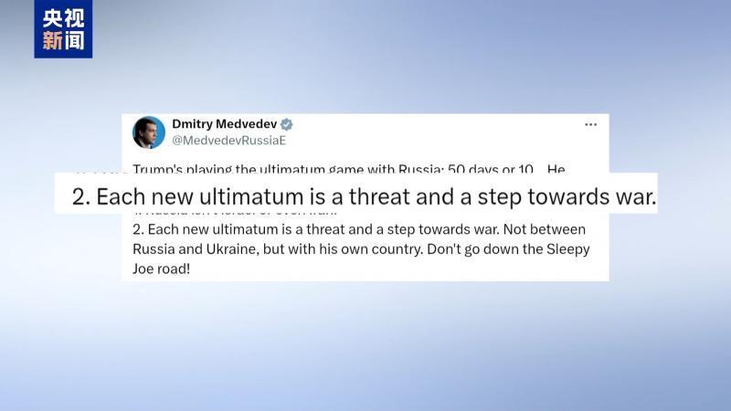 对此,俄罗斯联邦安全会议副主席梅德韦杰夫在社交平台发文回应:特朗普正在与俄罗斯玩所谓“最后通牒”的游戏,但我希望他记住,每一则“最后通牒”都构成威胁,将让美俄关系恶化,甚至走向战争。此后,梅德韦杰夫再次强调,美方无人有资格决定俄罗斯何时“坐上谈判桌”。